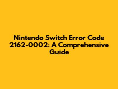 Understanding Nintendo Switch Error Code 2162-0002: What It Means for Your Console